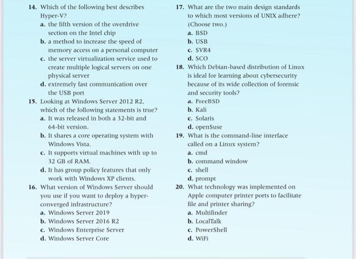 Solved 14 Which Of The Following Best Describes Hyper V A Chegg Com